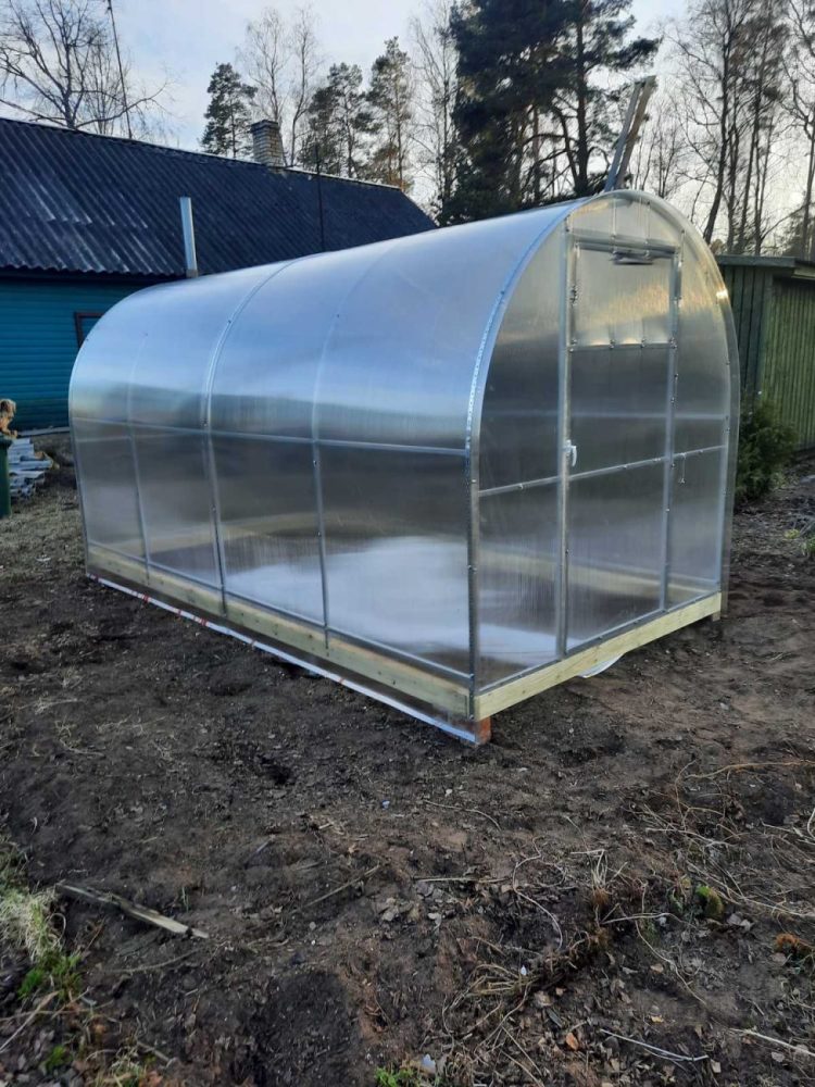 Арочная рама из оцинкованных стальных труб .Торцевые стенки- сварные; арки не разборные. Дверь на обоих концах с окном для проветривания, поликарбонат 4мм. У теплицы с покрытием 6мм торцы выполнены из 4мм поликарбоната В комплекте все необходимые для сборки болты и саморезы Теплица устанавливается на грунт ,фундамент или брус (не входит в комплект)